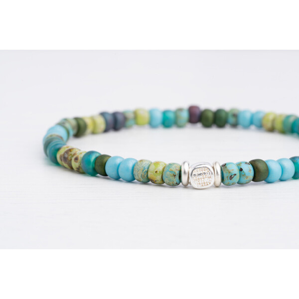 Miyuki Boncuklu – 925 Gümüş – Tamtur Bileklik şık ve renkli bir aksesuar sunar. Kaliteli 925 ayar gümüş ve özenle seçilmiş Miyuki boncuklardan üretilmiştir. Lastikli misina ve tamtur yapısı ile pratik bir kullanım sağlar.