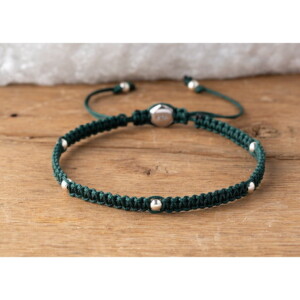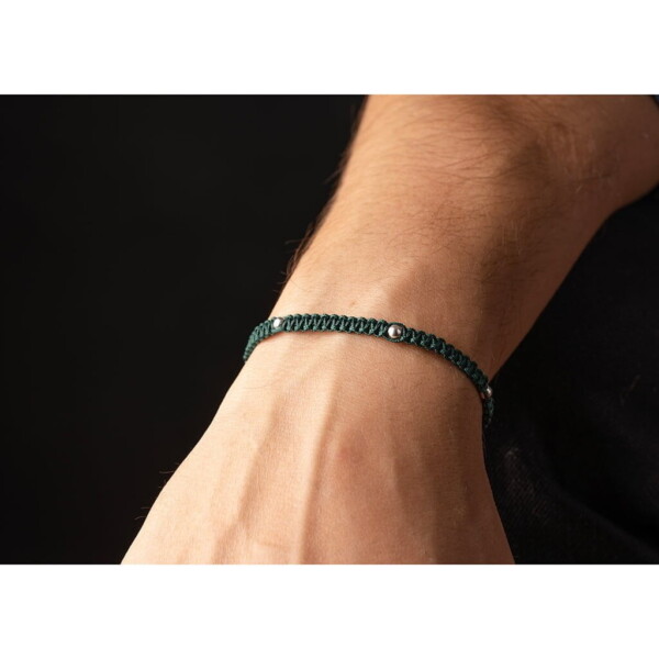 925 Gümüş Makrome Örgü Yeşil Renk Paraşüt İpli Bileklik PB23806