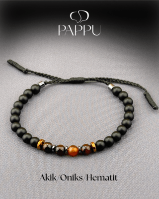 Akik,Oniks ve Hematit Doğal Taş Bileklik