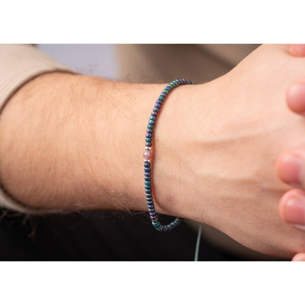 Petrol Mavi Miyuki-Gümüş-Kök Yakut Taşı Bileklik