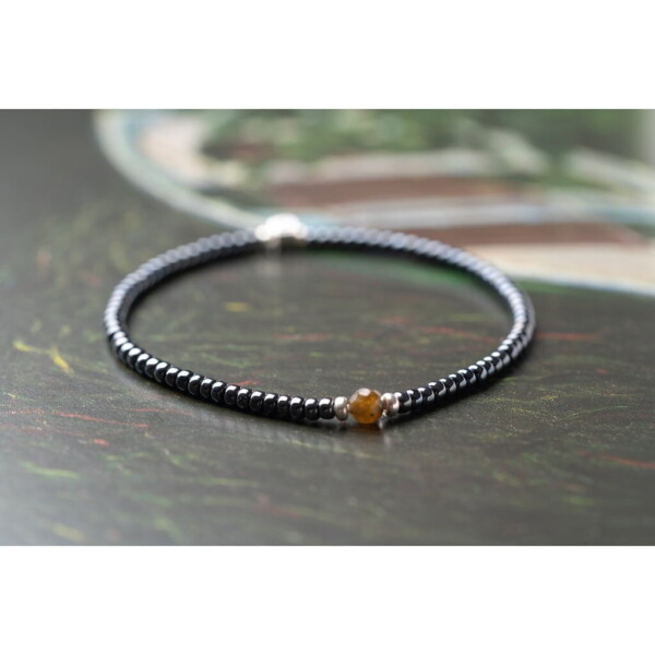 Labradorit Taşı – Antrasit Miyuki Boncuk Bileklik – Kömür