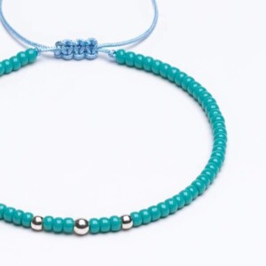 Miyuki – Gümüş Turkuaz Paraşüt İpli Üniseks Bileklik şık ve modern bir aksesuar sunar. Kaliteli gümüş ve canlı turkuaz Miyuki boncuklarından üretilmiştir. Dayanıklı paraşüt ipi ve pratik asansörlü kapama sistemi ile kullanım kolaylığı sağlar.