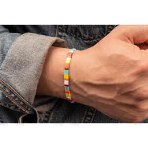 Miyuki Tila Boncuk – Gümüş Paraşüt İpli Bileklik PB3544 ile şık ve modern bir aksesuar deneyimi sunar. 5 mm Miyuki Tila boncuklar ve dayanıklı paraşüt ipi kullanılarak üretilmiştir. Pratik asansörlü kapama sistemi sayesinde kolayca takılıp çıkarılabilir, her bilek ölçüsüne uyum sağlar.