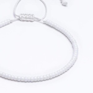 Yuvarlak Miyuki boncuklu bileklik ile minimal ve şık aksesuarlar dünyasına adım atın. Bu beyaz bileklik, gündelik kullanım için tasarlanmış üniseks bir takıdır. Yüksek kaliteli Miyuki boncukları ve sağlam paraşüt ipi sayesinde hem dayanıklı hem de zarif bir görünüm sunar. Asansörlü kapama sistemi ile kolayca takıp çıkarabilirsiniz.